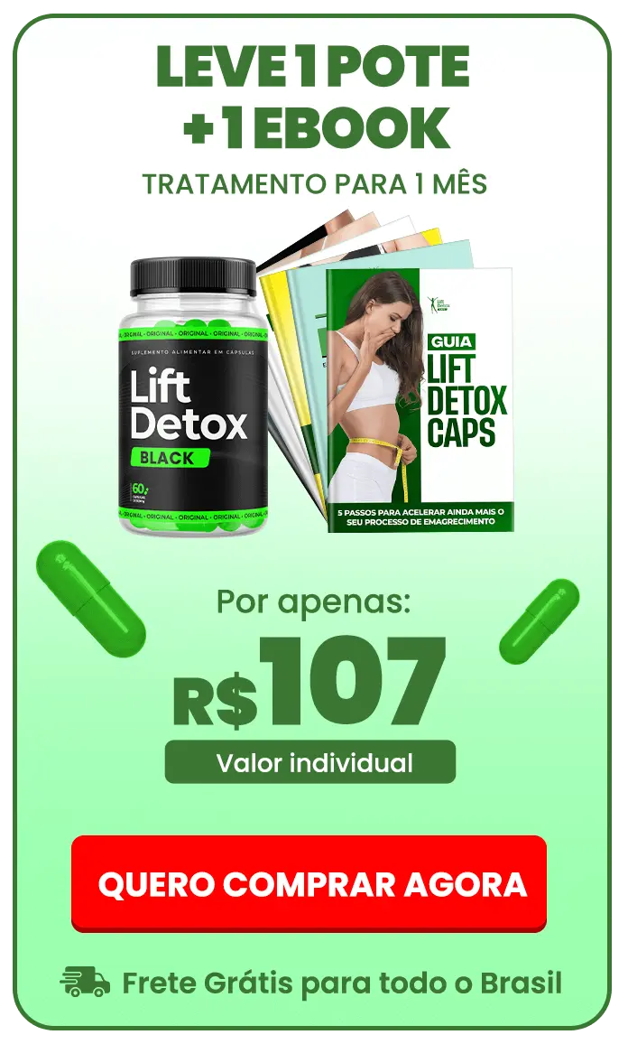 Lift Detox Black é um suplemento 100% NATURAL, que vai te ajudar a ficar mais leve de forma segura e eficaz.